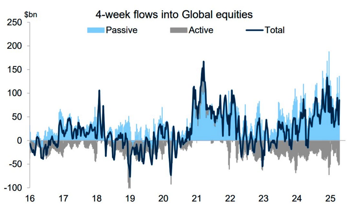 10k Words Equitable Investors April 2025 Apparently, Confucius did not say "One Picture is Worth Ten Thousand Words" after all. It was an advertisement in a 1920s trade journal for the use of images in ads on the sides of streetcars... Passive investment in global equities appears to have continued on while active flows remain negative and foreign demand for US stocks reverses sharply. But in the US, momentum was the winning factor in the past volatile week and month, a factor small caps have been lacking, with small cap earnings growth over the past decade generally not accompanied by multiple expansion. Credit spreads have been on the rise and the correlation between credit spreads and the valuation of equities has also been increasing. The post-tarrif volatility has cut back the forward PE on the ASX sharply BUT it is worth bearing in mind that the ASX's largest companies were established in a more distant era than the dominant companies in the US, where multiples are higher. On the US - inflation was retreating nicely prior to the tarrifs but consumer confidence is at GFC levels. Finally, we divert to look at online penetration of lottery sales around the world. Flows into global equities Source: Goldman Sachs Foreign official demand for US stocks Source: Reuters, Charles Schwab US equity market factor performance as of end of last week (ETF factor proxies) Source: Koyfin, Equitable Investors Strong earnings growth for small caps but their returns lagged as their valuation multiples remained more or less the same (2015-2024) Source: Robeco ICE BofA US High Yield Index Option-Adjusted Spread Source: FRED Relationship between the S&P 500 forward PE multiple & credit spreads Source: UBS US & Australian government bond yield spreads (10 year v 2 year) Source: Koyfin ASX forward PE multiple Source: Evans & Partners Australia's largest companies from a different era to the US Source: Owen Analytics Forward PE on US equities Source: Evans & Partners US core inflation had been falling sharply Source: Bloomberg US consumer confidence drops to GFC levels Source: Wilsons Advisory Online penetration of lottery sales Source: Jumbo Interactive (ASX code: JIN) April 2025 Edition Funds operated by this manager: Equitable Investors Dragonfly Fund Disclaimer Past performance is not a reliable indicator of future performance. Fund returns are quoted net of all fees, expenses and accrued performance fees. Delivery of this report to a recipient should not be relied on as a representation that there has been no change since the preparation date in the affairs or financial condition of the Fund or the Trustee; or that the information contained in this report remains accurate or complete at any time after the preparation date. Equitable Investors Pty Ltd (EI) does not guarantee or make any representation or warranty as to the accuracy or completeness of the information in this report. To the extent permitted by law, EI disclaims all liability that may otherwise arise due to any information in this report being inaccurate or information being omitted. This report does not take into account the particular investment objectives, financial situation and needs of potential investors. Before making a decision to invest in the Fund the recipient should obtain professional advice. This report does not purport to contain all the information that the recipient may require to evaluate a possible investment in the Fund. The recipient should conduct their own independent analysis of the Fund and refer to the current Information Memorandum, which is available from EI. |