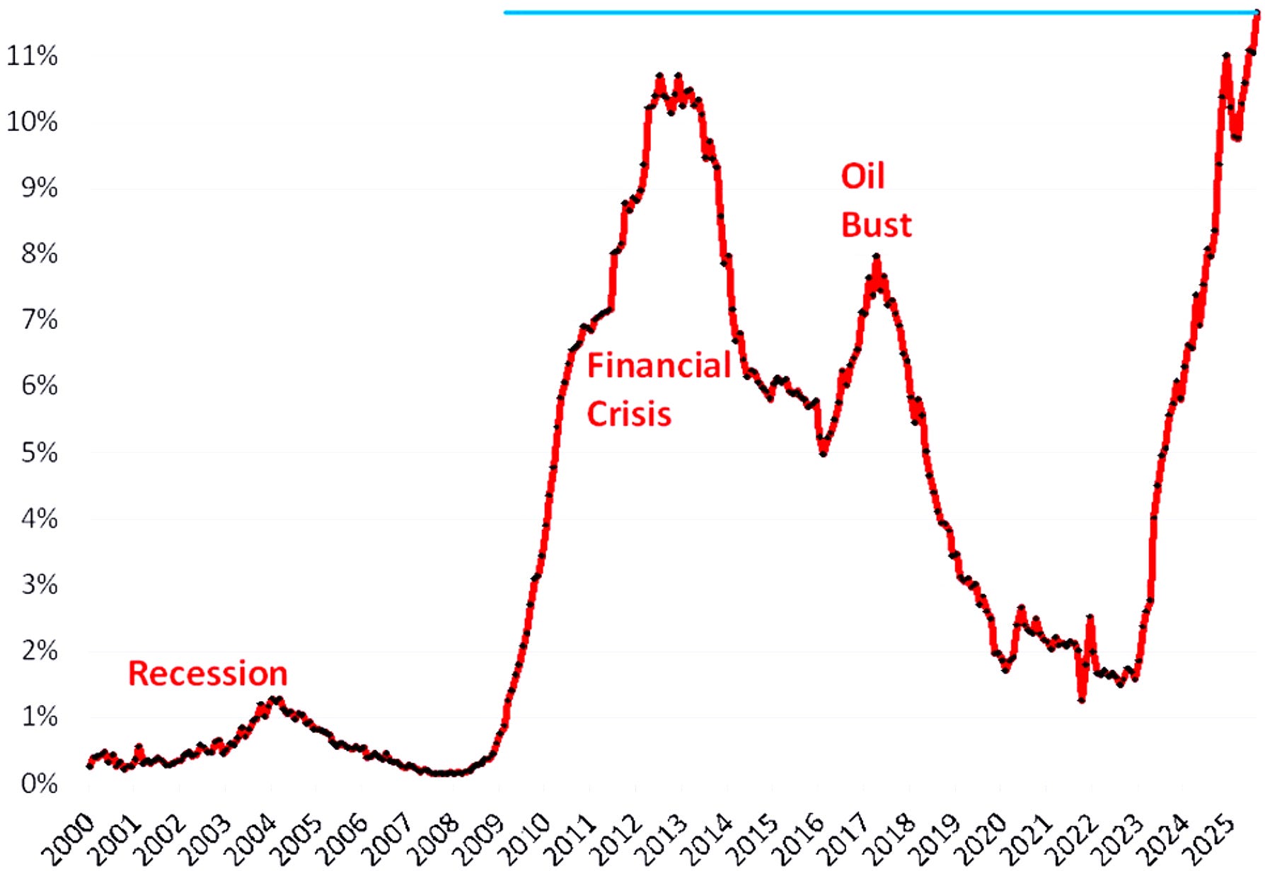 Source: Creative Planning, @CharlieBilello US Office CMBS delinquency rate (%)