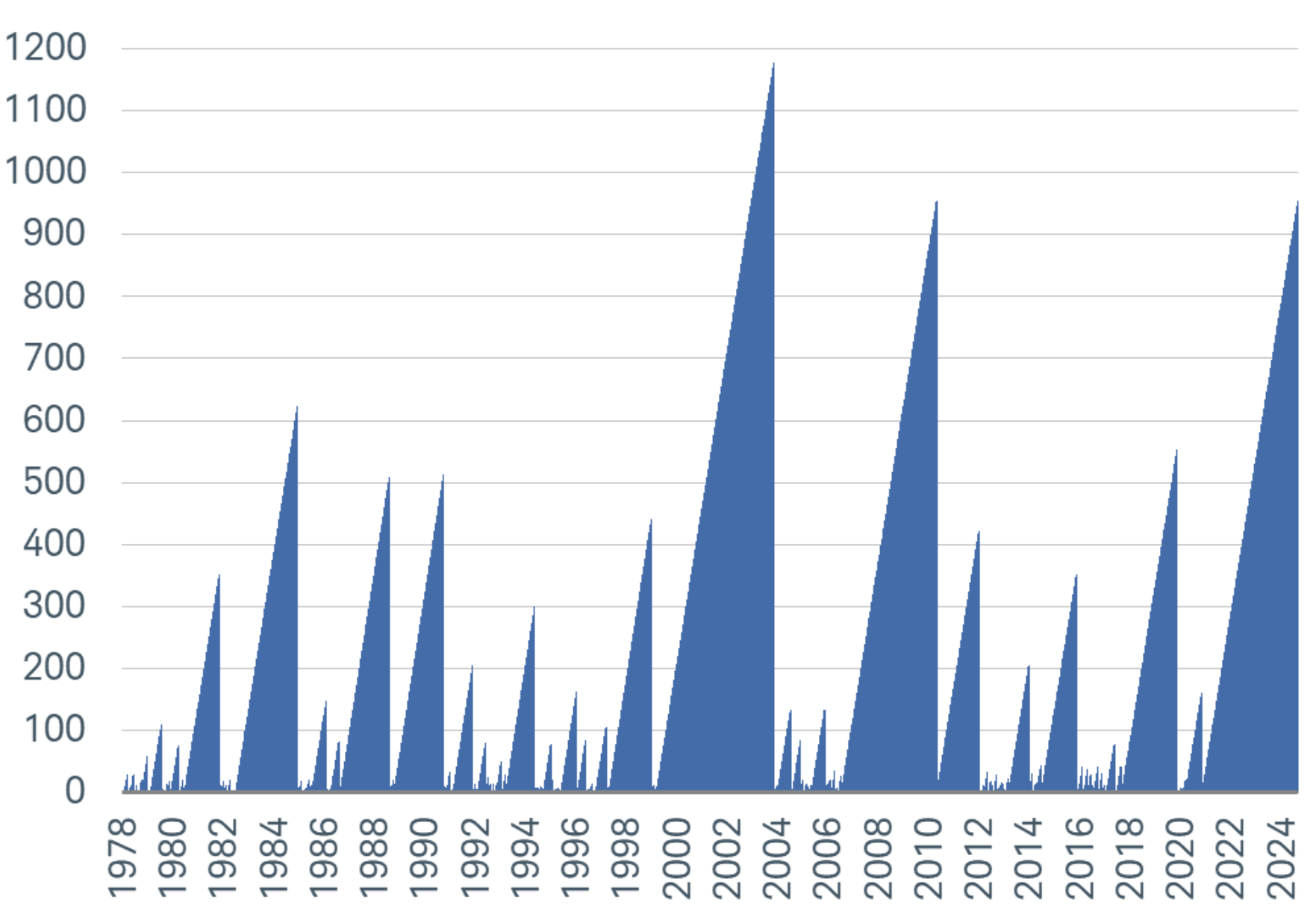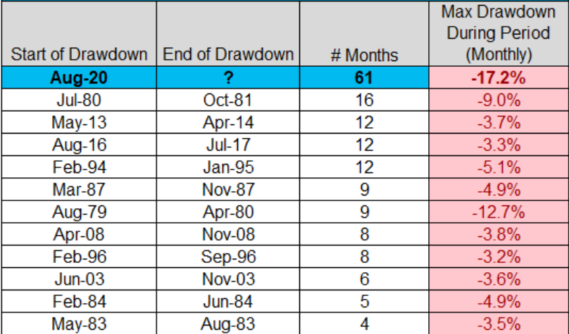 Source: Bespoke Number of says since Russell 2000 (US small cap index) last surpassed its prior high (drawdown)