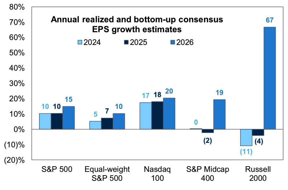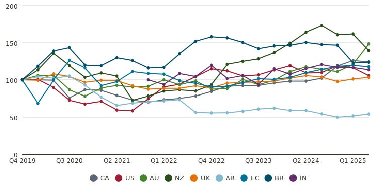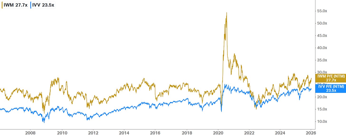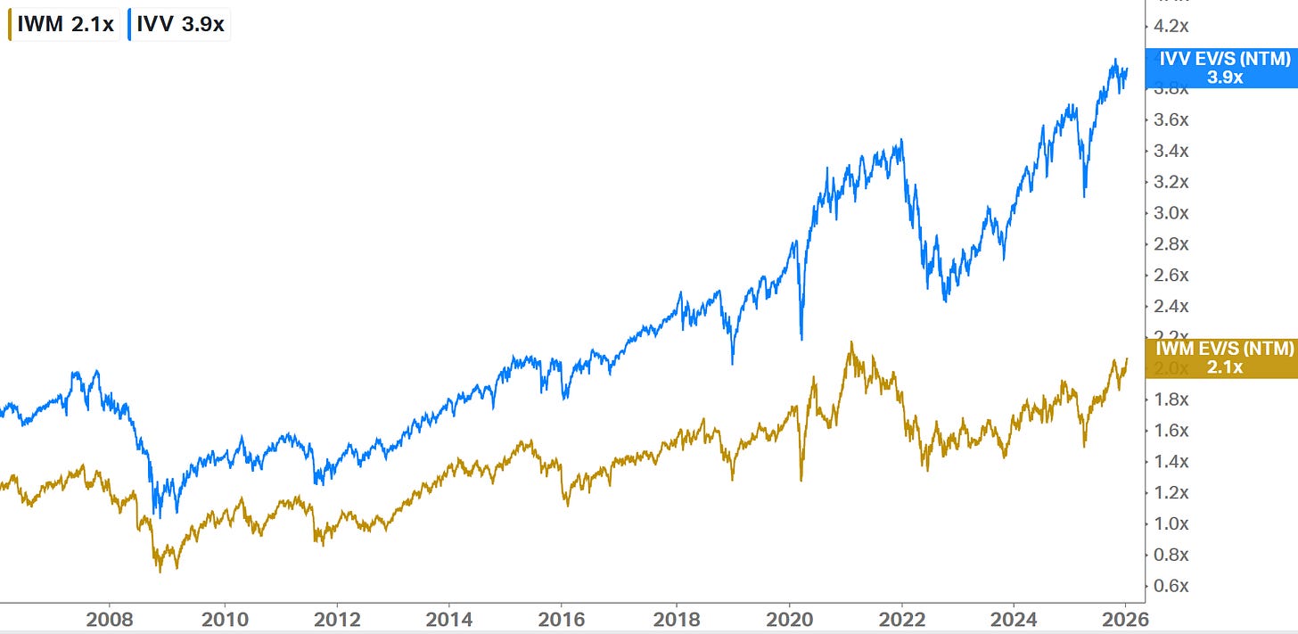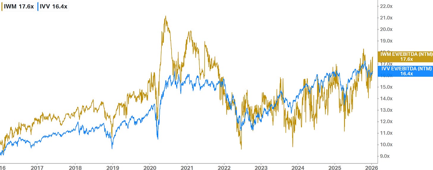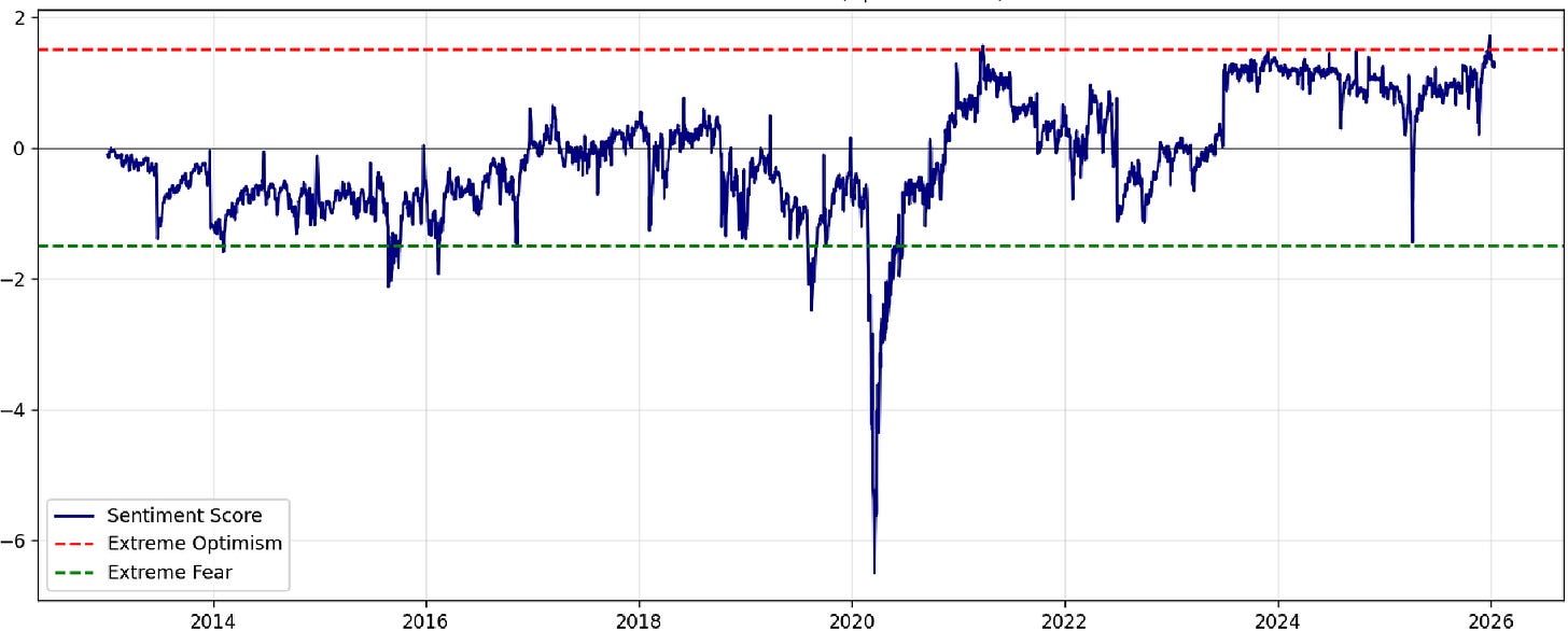 10k Words Equitable Investors January 2026 (2-minute read) We kick off calendar 2026 by trying our hand at our own sentiment indicators - combining valuation and implied volatility for the US equity and bond markets, the Aus equity market and ASX small caps. Are investors paying a premium price for market calmness? Then we check in on Morningstar's bottom-up valuations. There is a chasm between small and large cap valuations based on revenue multiples but not so much on earnings. Tech has done the heavy lifting in large cap valuation AND earnings in the US over the past decade and the trend is expected to continue - but can US smalls deliver on lofty targets and drive a catch-up? In US dollars, the US market has underperformed most major markets in the Americas. Then we look at how short-term (daily) volatility itself is becoming more volatile over time. Turning to the economy, we look at personal loan delinquencies and savings rates, with signs of deterioration in consumer behaviour. A custom US equity market sentiment score - based on CAPE adjusted equity risk premium and the VIX relative to their historical average and volatility