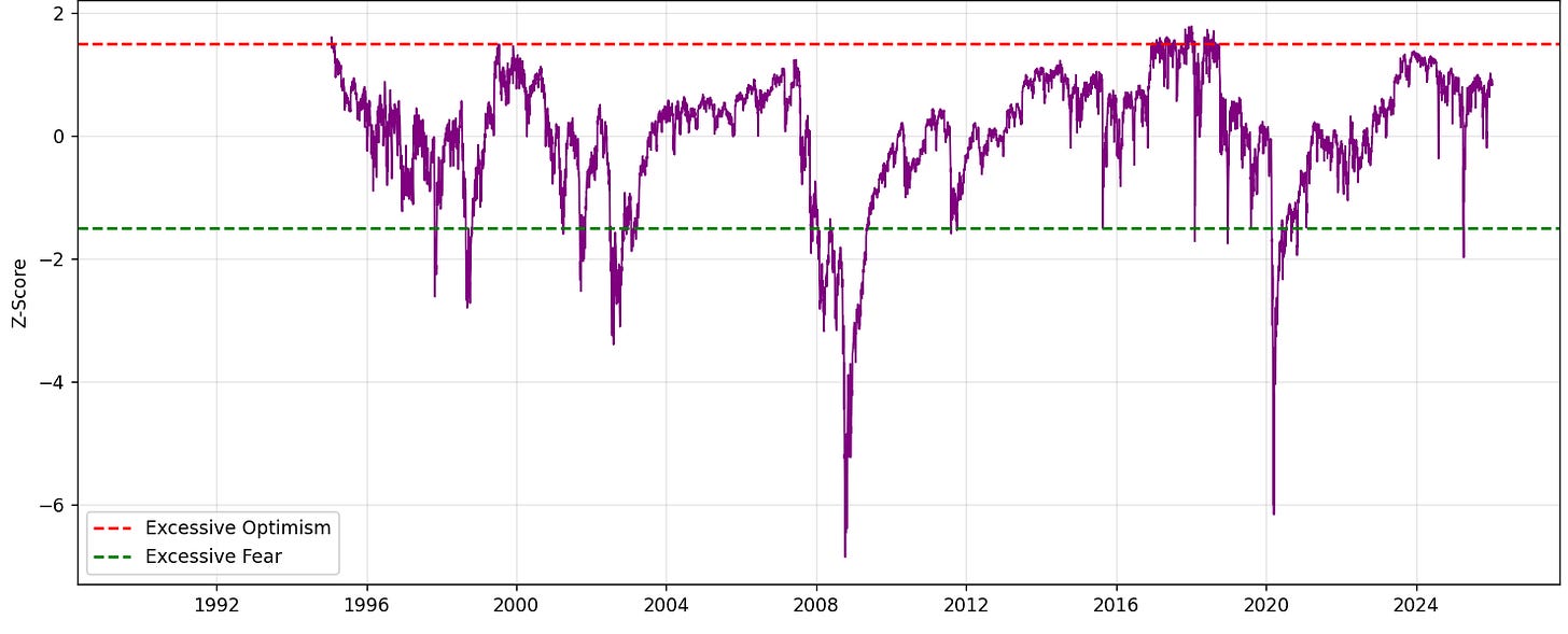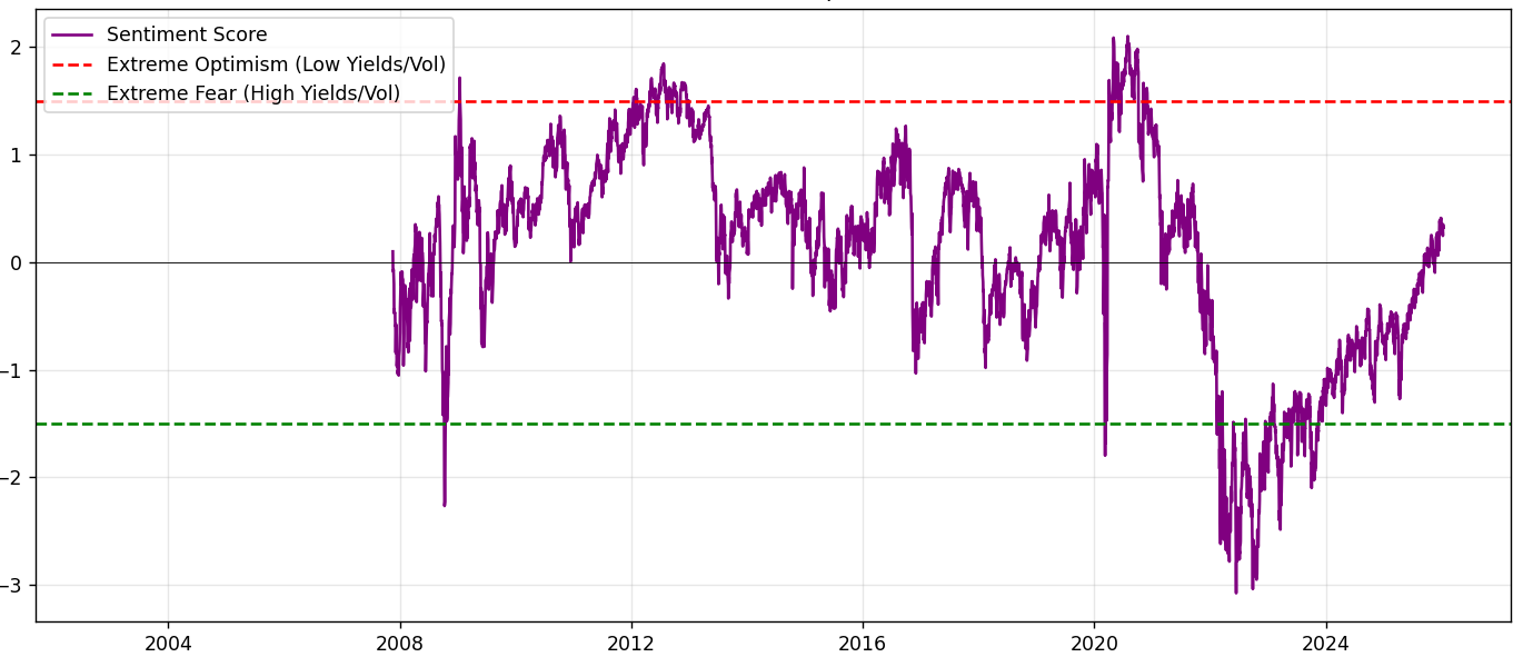 Source: Equitable Investors A custom ASX equity market sentiment score - based on the dividend yield spread on bonds and the ASX VIX relative to their historical average and volatility