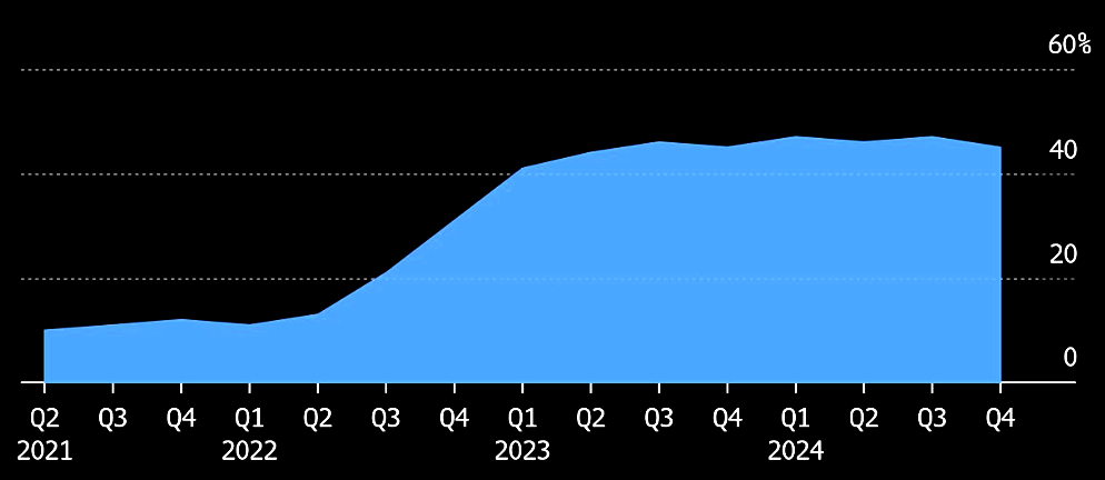 Source: Trepp, The Kobeissi Letter % of private equity buyout holdings in breach of leverage caps