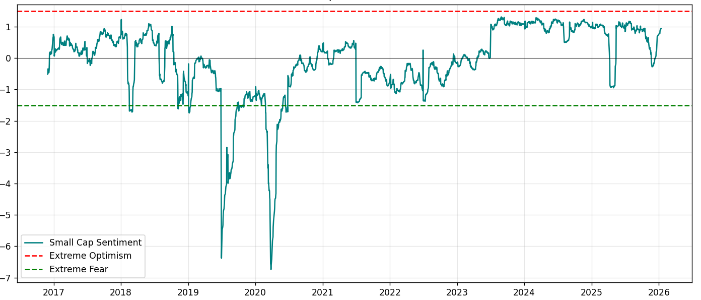 Source: Equitable Investors A custom ASX small cap sentiment score - based on the dividend yield spread on bonds and realised volatilty relative to their historical average and volatility