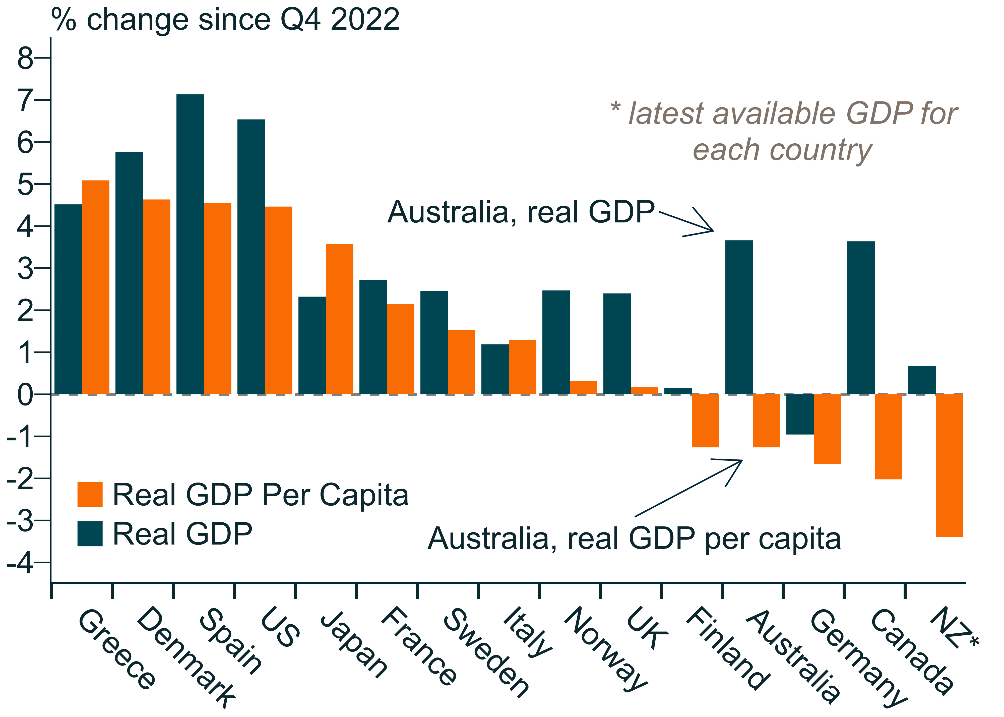 Source: Macrobond, AMP Real & real per capita growth in GDP
