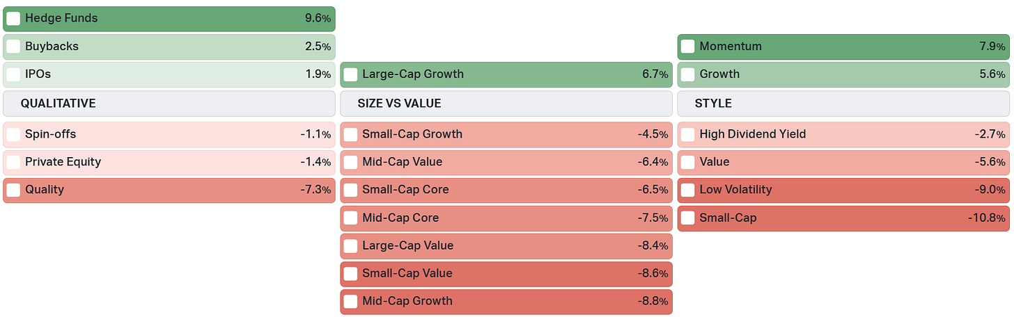 Source: Koyfin, Equitable Investors US factor ETF performance / S&P 500 ETF performance over past 12 months